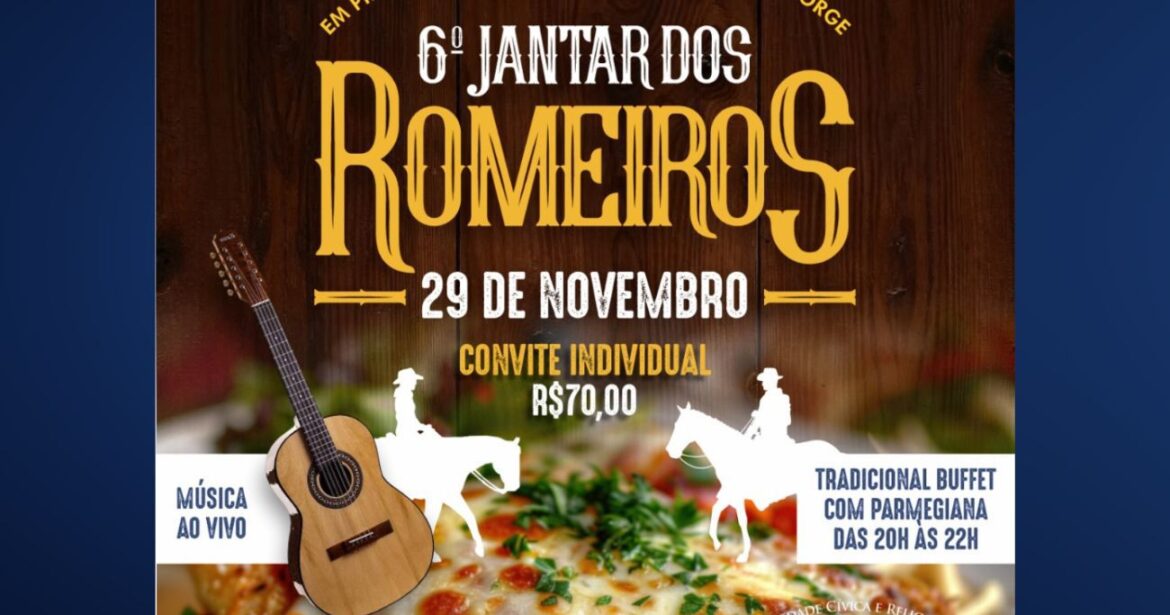 A cidade de São Roque receberá, no próximo dia 29 de novembro, o 6º Jantar dos Romeiros, evento tradicional em prol da Romaria dos Cavaleiros de São Jorge.