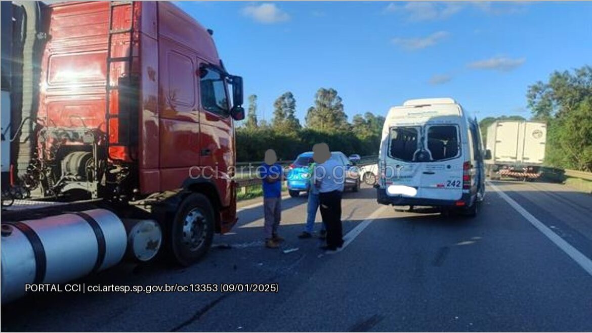 De acordo com informações, a carreta, modelo Volvo FH 440, circulava pela pista, quando ao tentar realizar uma manobra para mudar de faixa, colidiu contra a traseira de uma van Sprinter. O impacto fez com que a van fosse projetada contra a traseira de um automóvel Nissan Kicks que trafegava logo atrás.