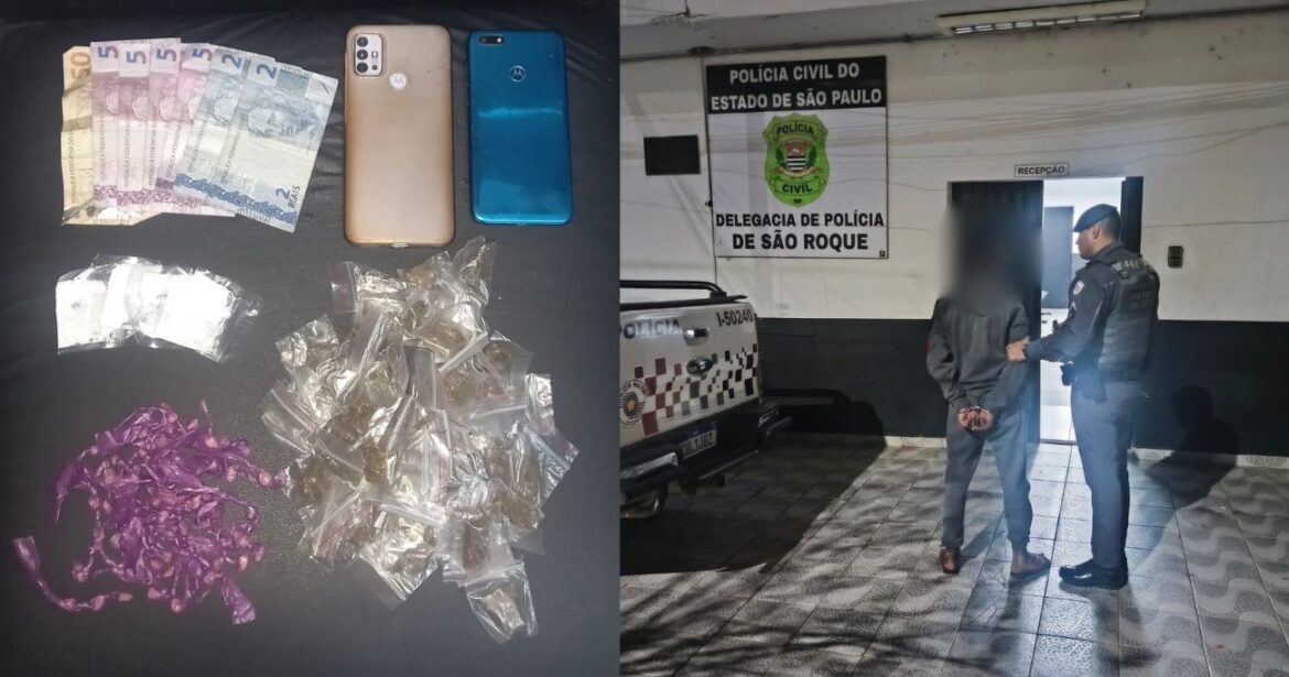 Conduzido à Delegacia de São Roque, a prisão em flagrante foi ratificada pelo delegado, com enquadramento no artigo 33 da Lei de Drogas.