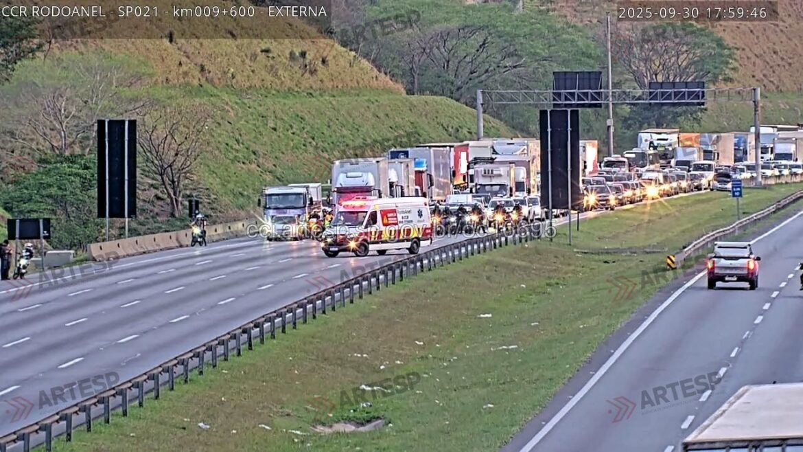 A ocorrência foi registrada por volta das 17h40, e gerou bloqueios parciais nas faixas 1 e 2 da rodovia. A faixa de acostamento também chegou a ser interditada momentaneamente.