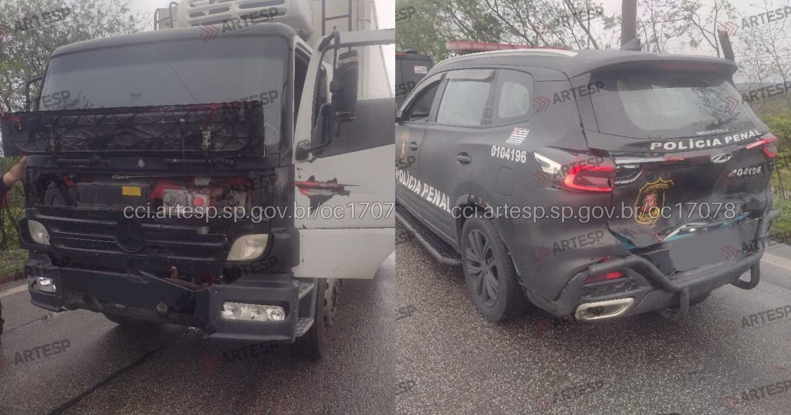 Um acidente foi registrado na tarde de domingo (2) na Rodovia Castello Branco (SP-280), na altura do km 111,6, em Boituva. O caso envolveu um caminhão e uma viatura da Polícia Penal, na praça de pedágio da concessionária Colinas.