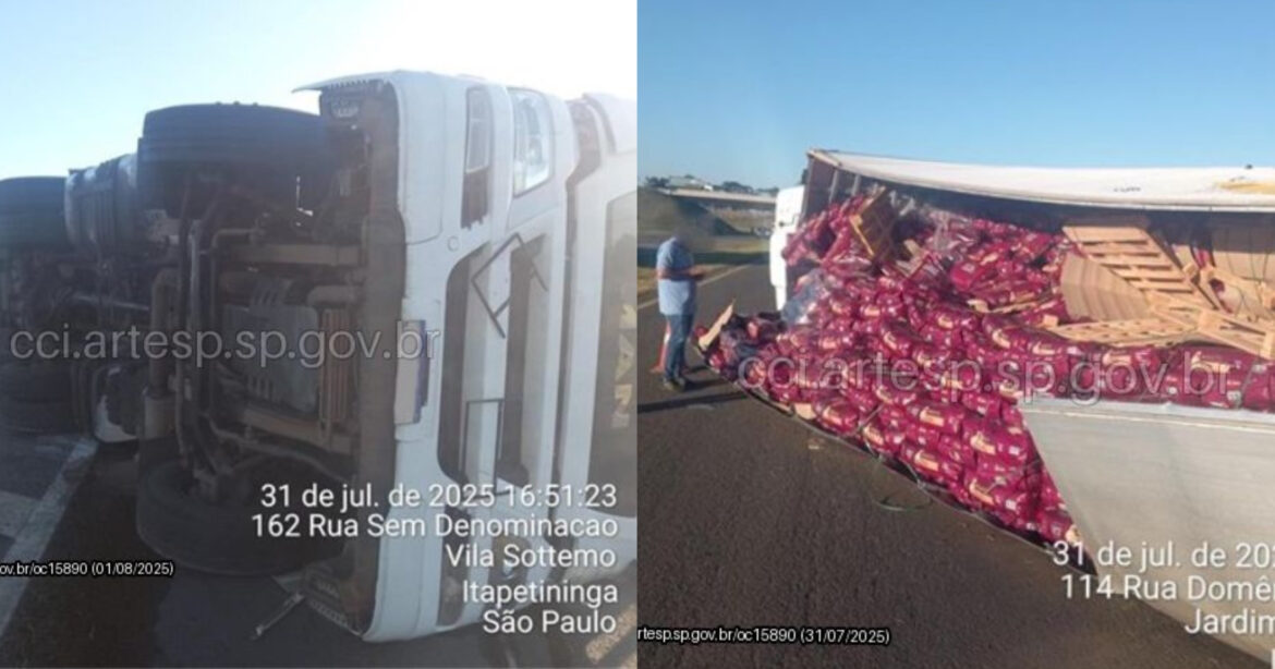 Um tombamento de carreta na altura do km 158,9 da rodovia SP-127, em Itapetininga, causou a interdição total da pista norte por mais de 21 horas, entre a tarde de quinta-feira (31) e o início da tarde de sexta-feira (1º). A ocorrência foi classificada como de alta criticidade.
