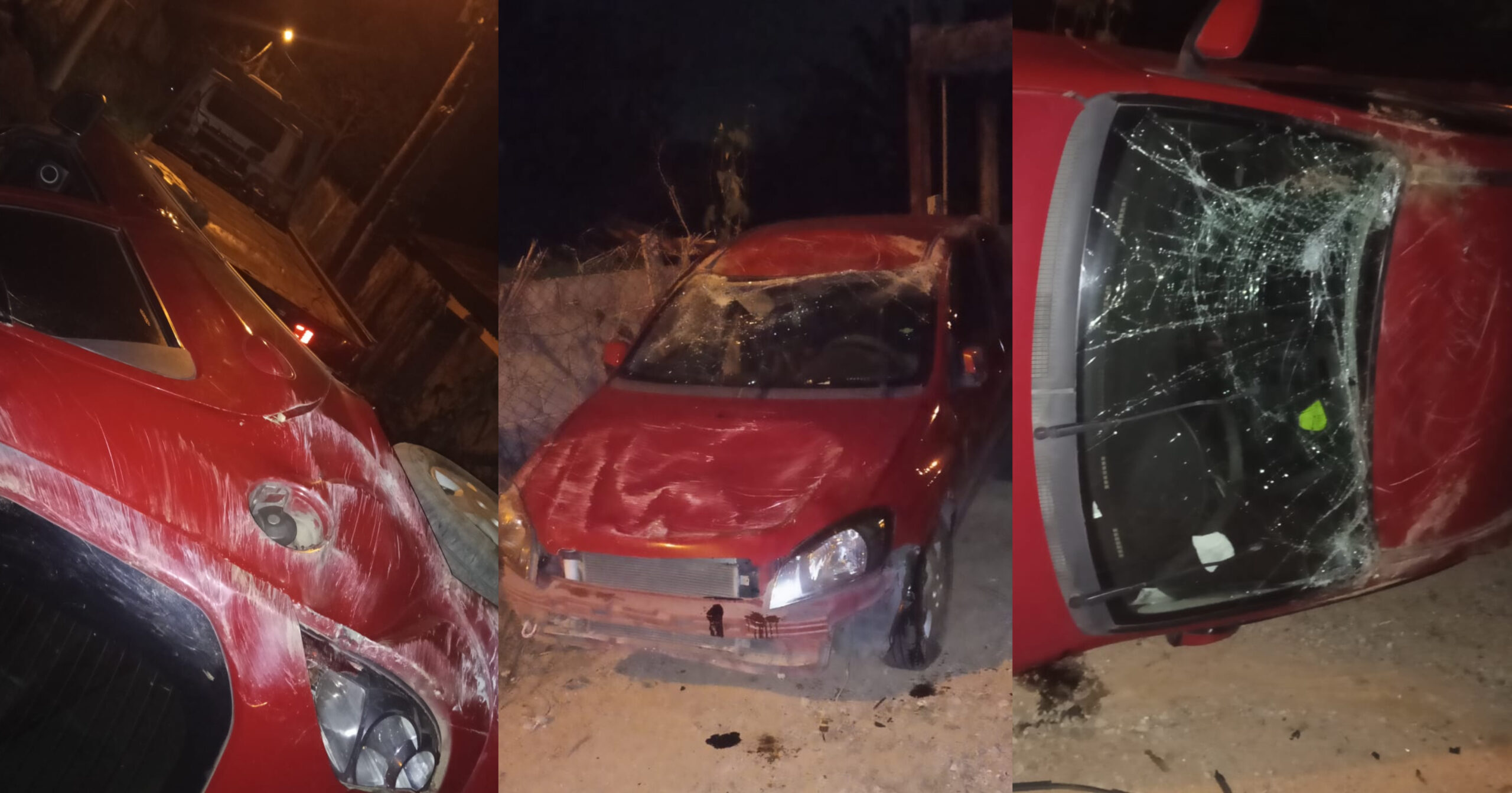 Um carro Celta vermelho capotou na descida da Rua das Primavera, no bairro Mombaça, em São Roque, na última quarta-feira (15). O veículo ficou completamente destruído e o motorista não sofreu ferimentos graves.
