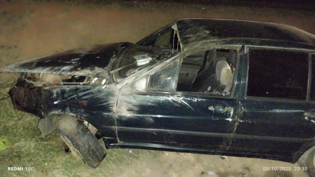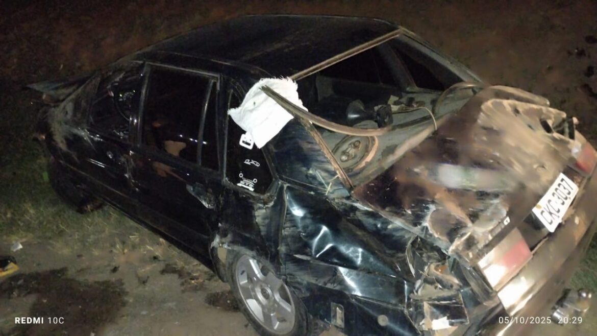 Em imagens é possível ver que o carro ficou completamente destruído. As causas do capotamento serão apuradas pelas autoridades competentes.