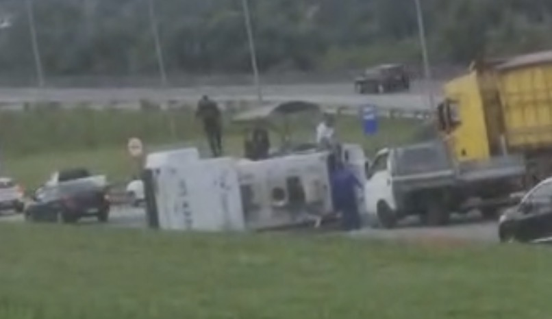 Segundo informações preliminares, o veículo seguia no sentido Capital quando o motorista perdeu o controle da direção, resultando no tombamento na pista. O acidente provocou lentidão no tráfego, e uma das faixas precisou ser interditada parcialmente para atendimento da ocorrência e remoção do veículo.