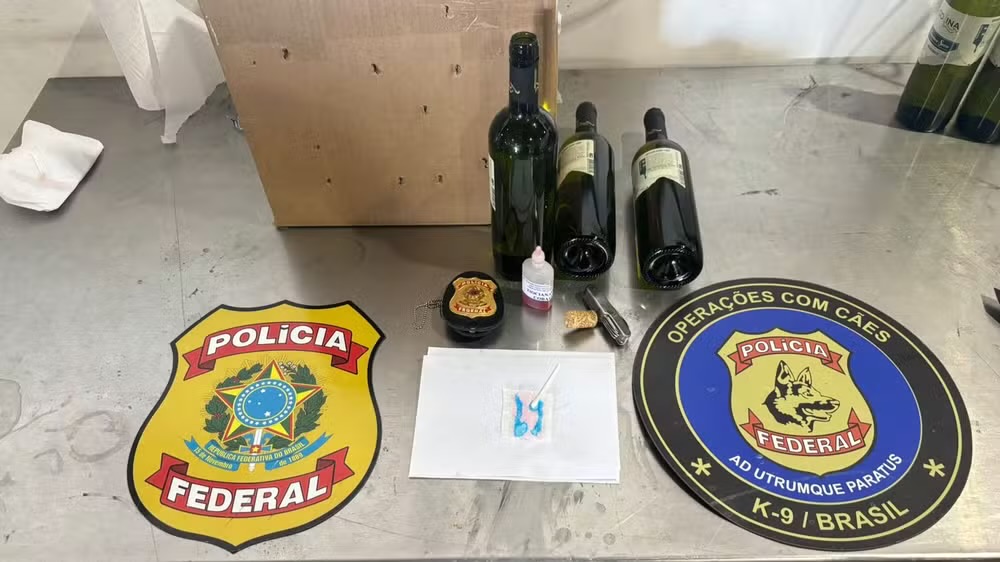 Após a sinalização dos cães, os policiais abriram os volumes e encontraram as garrafas lacradas, que, à primeira vista, pareciam conter apenas vinho branco. A análise preliminar apontou que o líquido tinha sido usado para camuflar a droga. A PF reforça que esse tipo de método tem sido adotado por grupos criminosos para tentar burlar a fiscalização aeroportuária.