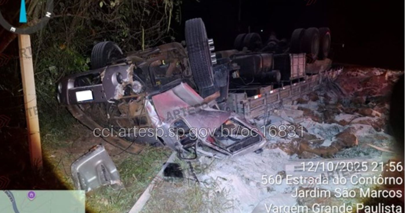 Com “carga ilícita” motorista morre após tombar caminhão na Rodovia Raposo Tavares em São Roque