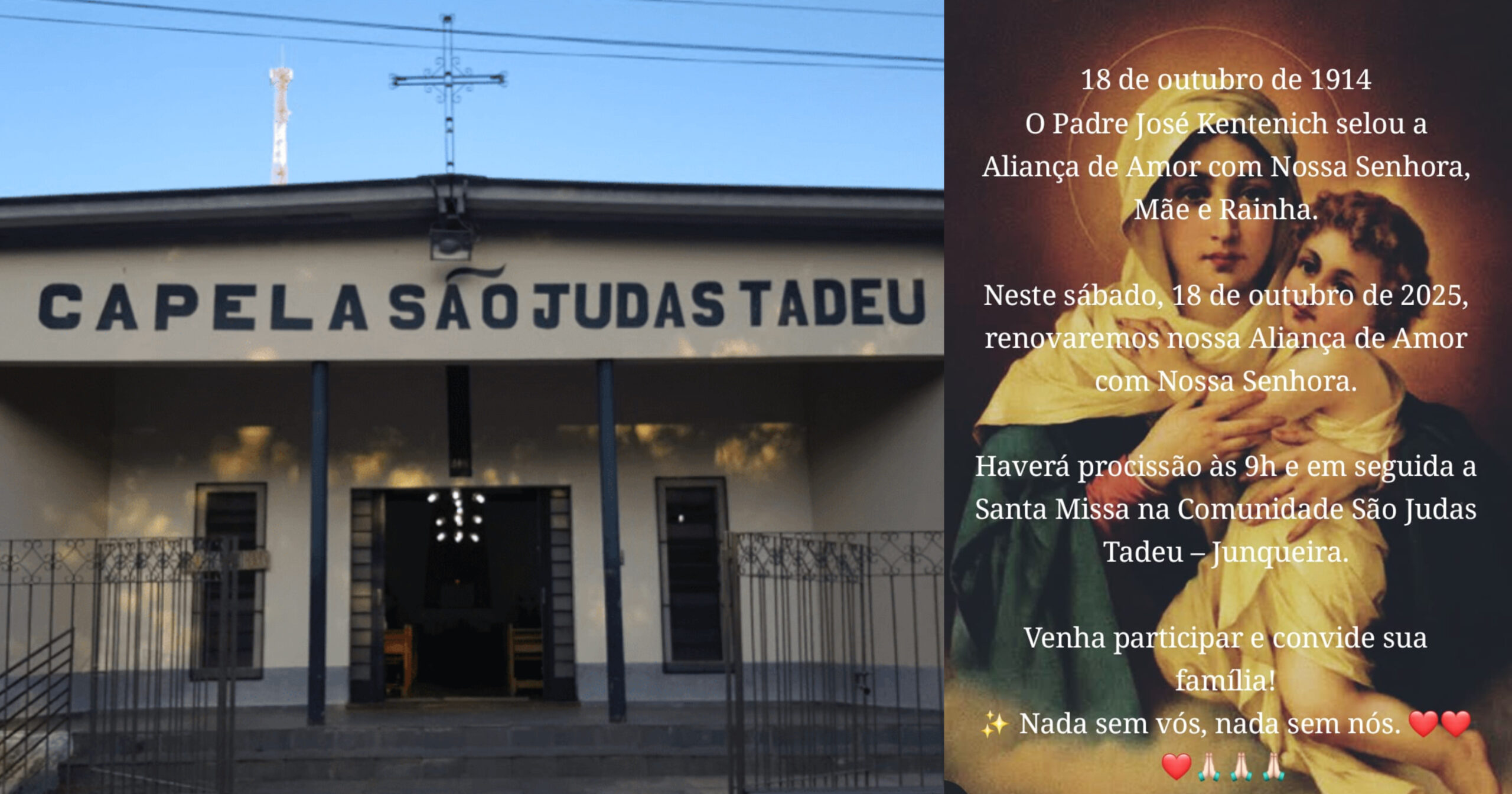 A Comunidade São Judas Tadeu, localizada no bairro Junqueira, em São Roque, realiza neste sábado (18) a celebração em honra à Mãe e Rainha Três Vezes Admirável de Schoenstatt.