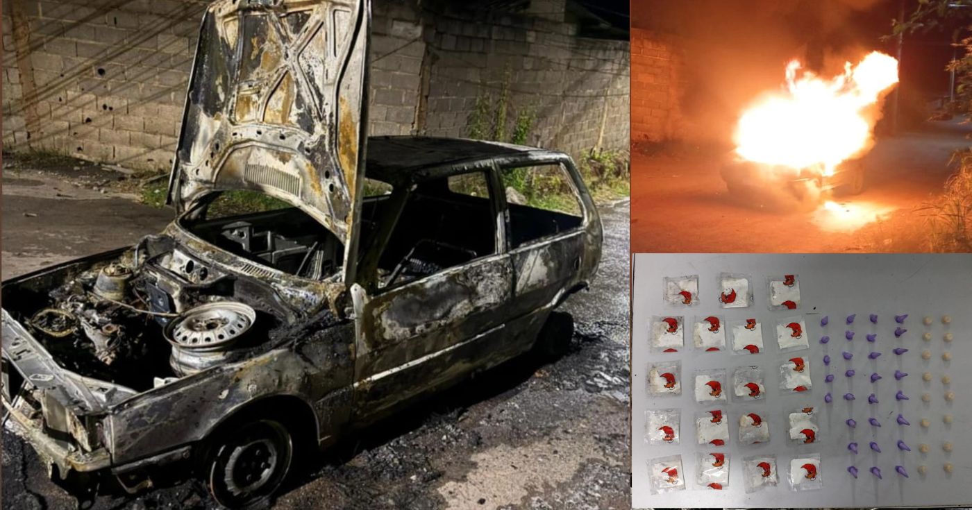 A situação se agravou quando o indivíduo virou-se e, utilizando um isqueiro, ateou fogo em caixas e sacos plásticos que estavam no porta-malas do veículo, causando um incêndio.