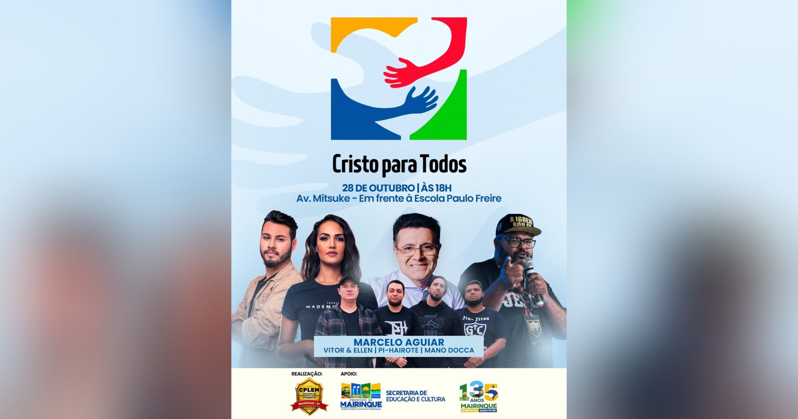 Mairinque se prepara para uma noite especial de fé, música e união. Nesta terça-feira (28), será realizado o evento “Cristo para Todos”, um grande encontro que promete reunir famílias e fiéis de toda a região em um momento de louvor, adoração e comunhão.