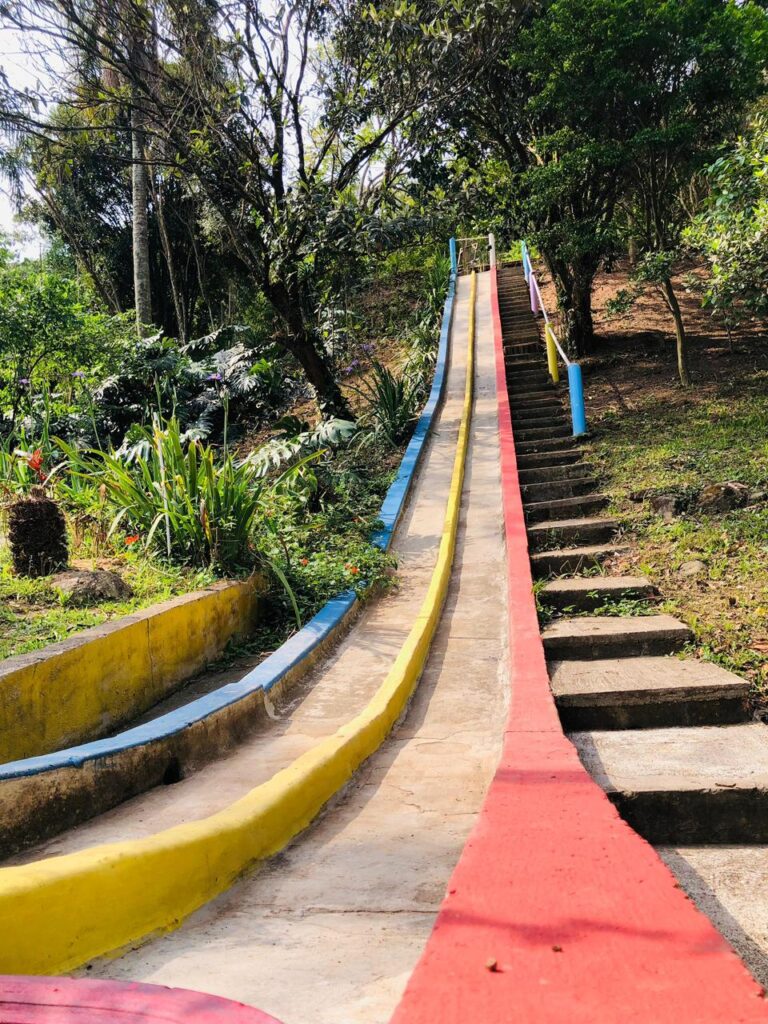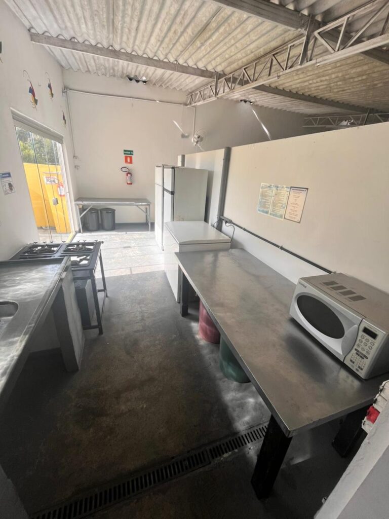 O local conta com 20 mesas, 80 cadeiras, churrasqueira, fogão a lenha, piscina de bolinhas, cama elástica, escorregador, Wi-Fi, som ambiente com Bluetooth, geladeiras, freezer, fogão industrial, microondas e banheiros com trocador, além de acessibilidade e grande contato com a natureza.