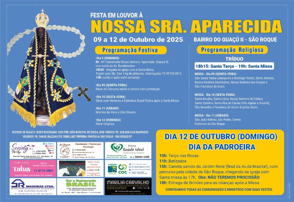 As celebrações em honra a Nossa Senhora Aparecida na comunidade do Bairro Guaçu II em São Roque, tiveram início no dia 05 de outubro com a tradicional caminhada, que contou com a participação de mais de 250 fiéis.