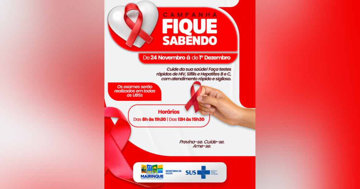 A Prefeitura de Mairinque, por meio da Secretaria de Saúde, iniciou nesta segunda-feira (24) a Campanha Fique Sabendo 2025, ação que integra o movimento nacional do Dezembro Vermelho, mês dedicado à prevenção ao HIV, sífilis e outras Infecções Sexualmente Transmissíveis (ISTs).