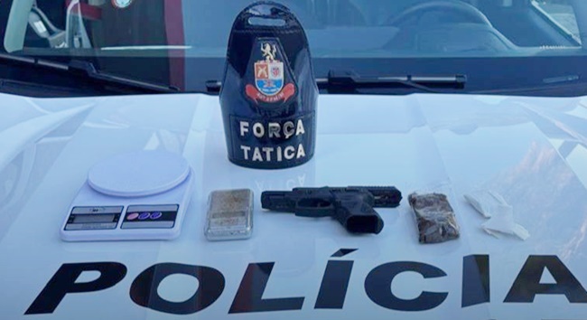 A operação foi deflagrada após uma denúncia anônima, que indicava a possível presença de drogas e armas em uma residência na região. As equipes da Força Tática se deslocaram até o local e, ao chegarem ao endereço informado, visualizaram através de uma janela aberta uma pistola sobre um móvel e sentiram forte odor característico de entorpecente.