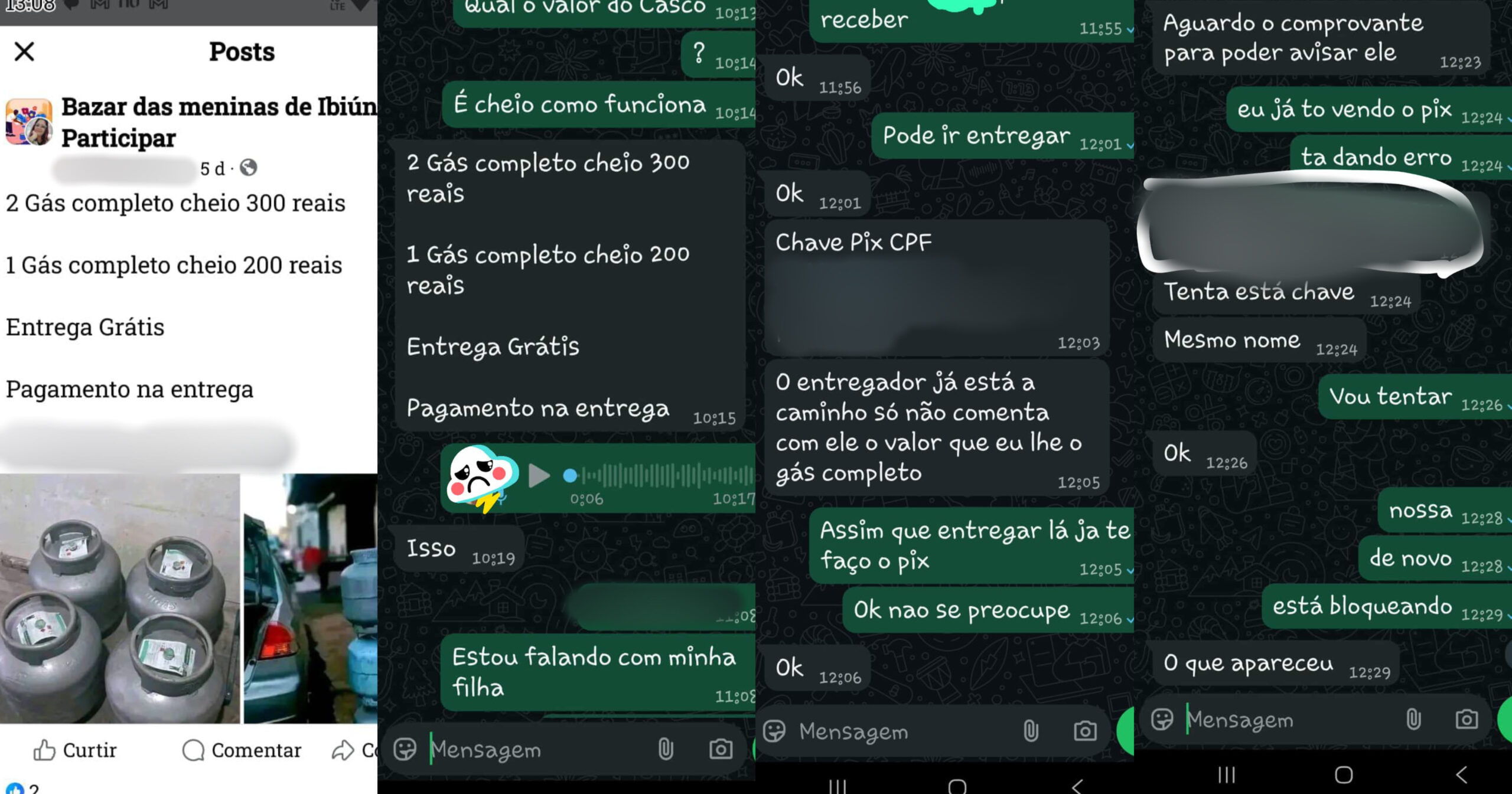 De acordo com o relato, o golpe começa quando o consumidor entra em contato com o suposto vendedor, geralmente encontrado em anúncios no Facebook. Ao fornecer o endereço para entrega, os golpistas ligam para uma empresa de gás verdadeira, informando dados falsos de clientes.