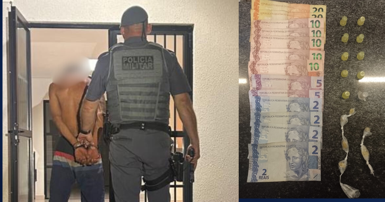 A Polícia Militar prendeu um homem por tráfico de drogas na noite de segunda-feira,’dia 03, na Rua João Domingues Vieira, em Alumínio.