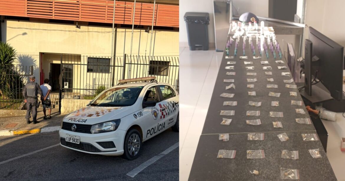 Na busca pela sacola que havia sido jogada, os policiais localizaram 72 eppendorfs contendo cocaína (103,1 gramas), 31 porções de maconha (114 gramas) e 37 pacotes de crack (13,1 gramas).