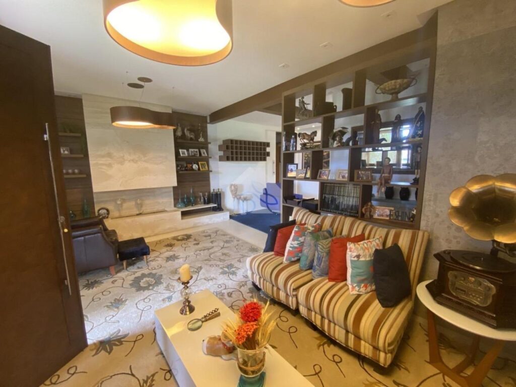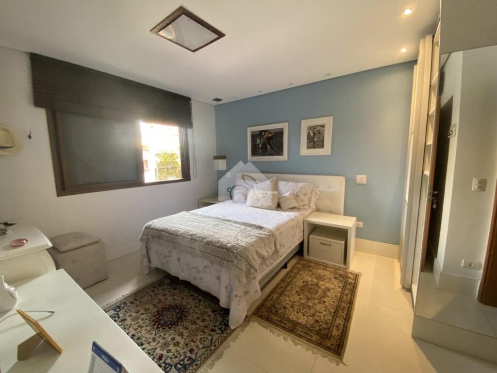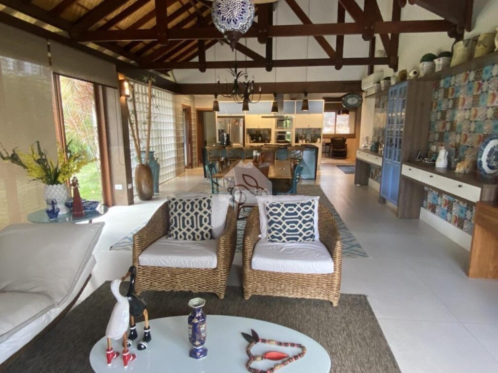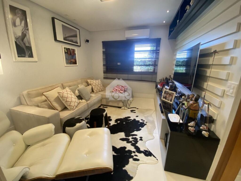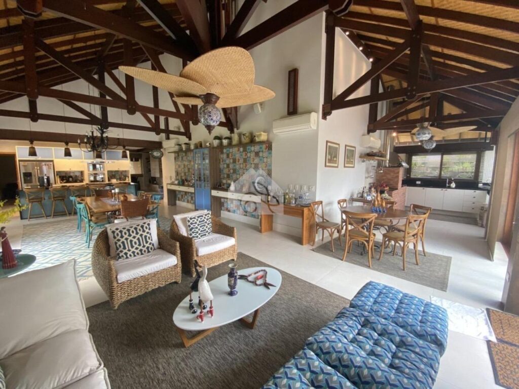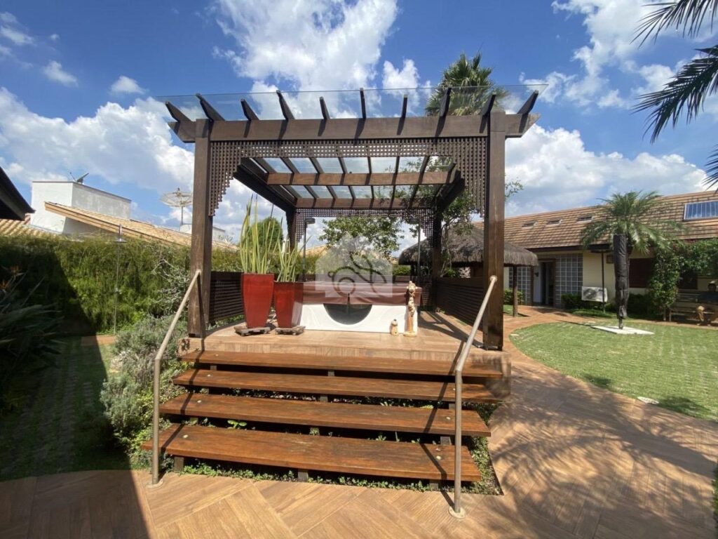 Com área total de 1.000 m² e 350 m² de construção, a casa possui cinco quartos (sendo duas suítes), três salas, seis banheiros e quatro vagas de garagem. O imóvel está mobiliado e conta com acabamento de alto nível, além de lareira e área gourmet.