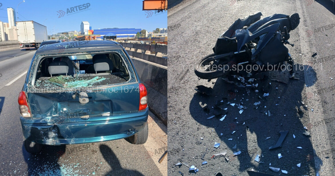 De acordo com o boletim da ocorrência, o carro reduziu a velocidade devido ao tráfego lento, mas o motociclista não conseguiu frear a tempo e colidiu na traseira do veículo. Com o impacto, a moto tombou na pista. O condutor foi socorrido em estado grave e encaminhado ao pronto-socorro, mas não resistiu aos ferimentos e teve o óbito constatado às 9h15.