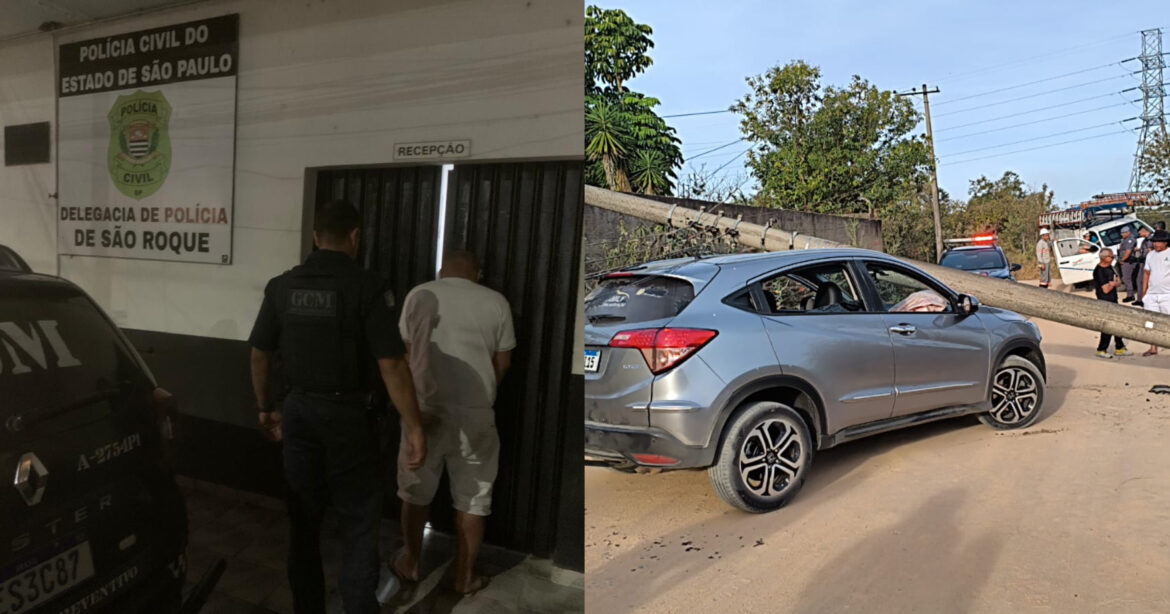 Um homem foi preso em flagrante por embriaguez ao volante após colidir com um poste de energia no bairro Tanque Velho, em Araçariguama, na tarde deste sábado (2). A ocorrência foi registrada pela Guarda Civil Municipal, que foi acionada para atender ao acidente na Rua Antônio Máximo.