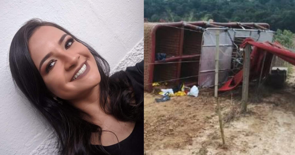 Uma mulher de 27 anos foi confirmada como a vítima fatal após uma queda de balão tripulado em Capela do Alto (SP), na manhã de domingo (15). Juliana Alves Prado Pereira estava grávida s fazia o passeio ao lado do marido, com quem celebrava o Dia dos Namorados. O casal era de Pouso Alegre (MG) e havia se casado recentemente.