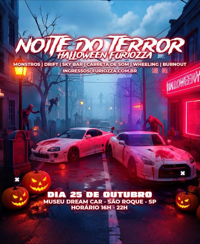 O maior evento de Halloween Automotivo acontece hoje, sábado (25), em São Roque. A Noite do Horror “Halloween no Museu Dream Car” promete reunir carros fantasiados, muita adrenalina, drift e atrações temáticas na Estrada do Vinho, das 16h às 22h.