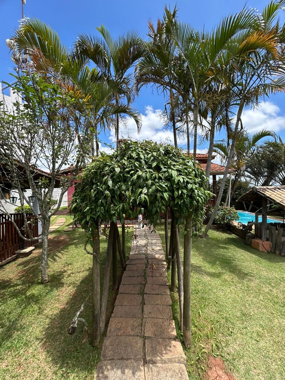 A área externa possui garagem coberta para quatro carros, cozinha caipira com fogão e forno a lenha, ampla lavanderia, proporcionando comodidade para a rotina doméstica. Quarto externo com lavabo, área gourmet com lavabo, varanda e churrasqueira, poço caipira, além de água da Sabesp disponível, caixa de água em formato de castelo, pergolado, casinha de boneca, piscina com cascata e aquecedor solar e pomar com diversas frutas, como jabuticabas, mexerica pokan, limão, laranja-lima, acerola, abacaxi, lichia, pitaya.