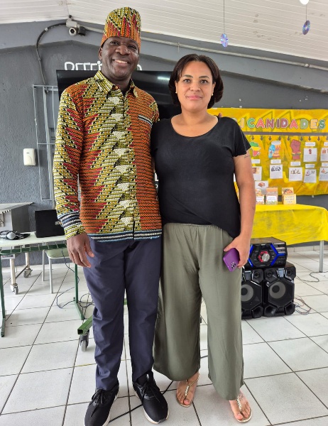 Durante o encontro, os alunos tiveram a oportunidade de fazer perguntas e esclarecer curiosidades sobre a África, demonstrando grande interesse pelo tema e pela trajetória do convidado. A professora Ana Paula destacou a importância de proporcionar aos estudantes uma nova visão de mundo, mostrando que é possível transformar a própria realidade por meio do conhecimento, independentemente das dificuldades enfrentadas.