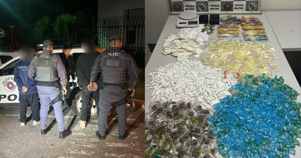 Na madrugada de terça-feira, dia 11, por volta de 1h45, a Polícia Militar prendeu dois indivíduos por tráfico de drogas e capturou um procurado pela Justiça durante patrulhamento no bairro Recanto dos Eucaliptos, em Mairinque. A ação ocorreu na Rua Natalino Rocha, em via pública.