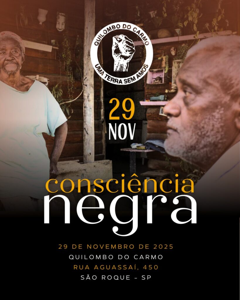 O Quilombo do Carmo, em São Roque, realiza no dia 29 de novembro, a partir das 9h, um evento cultural aberto ao público, com atividades que incluem rodas de conversa, apresentações artísticas e visitas guiadas a pontos históricos da comunidade.