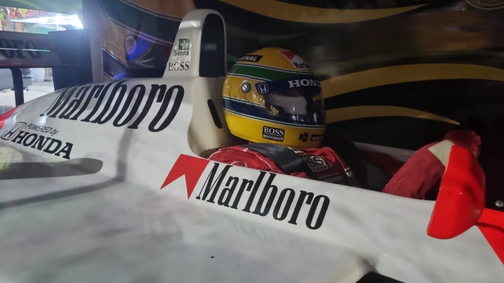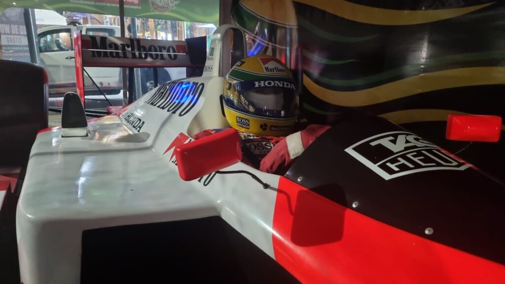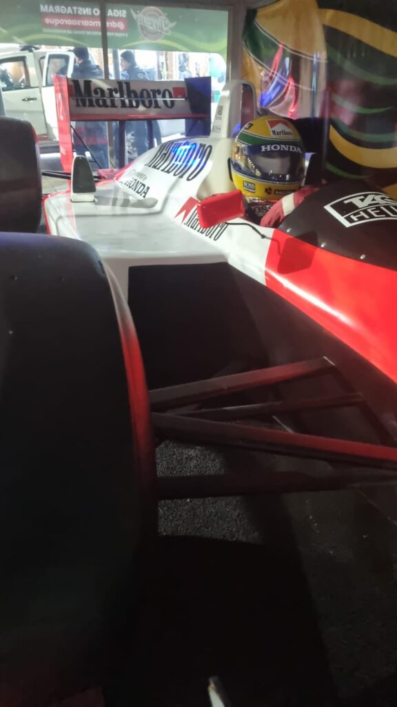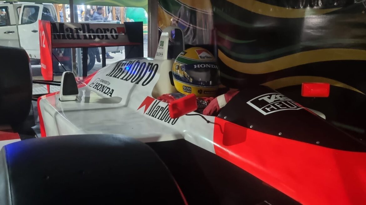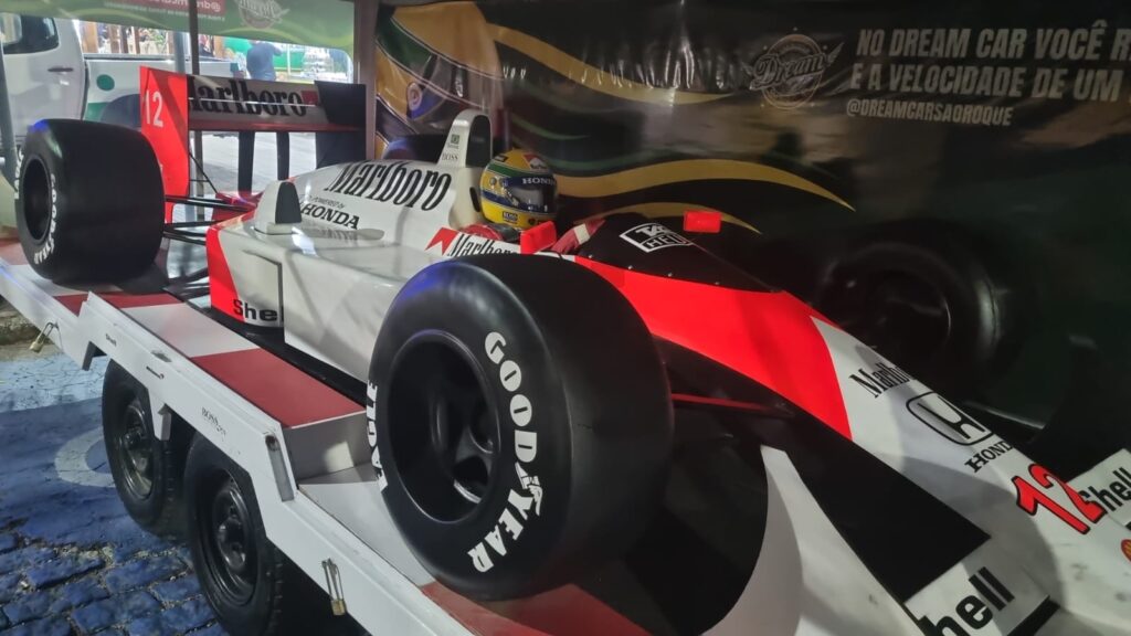 Uma réplica da McLaren MP4/6, carro utilizado por Ayrton Senna na temporada de Fórmula 1 de 1991, ficou em exposição entre sábado (9) e domingo (10), na Praça da Matriz, em São Roque, durante as Festas de Agosto 2025. O modelo pertence participou do Desfile de Carros Antigos, realizado no sábado, e já voltou ao Dream Car Museum, localizado no Roteiro do Vinho.
