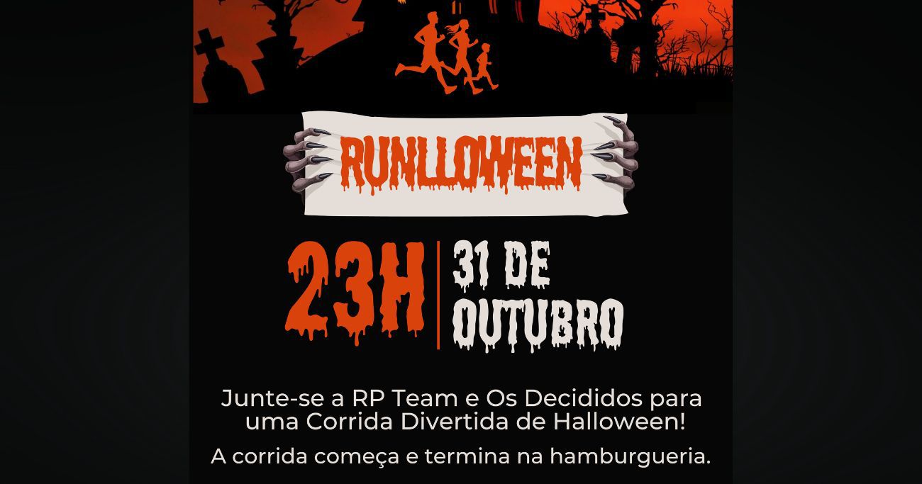 A RP Team, em parceria com Os Decididos – Burger House, promove na próxima sexta-feira, 31 de outubro, a corrida “Runlloween”, que promete reunir corredores fantasiados em uma noite de muita animação.