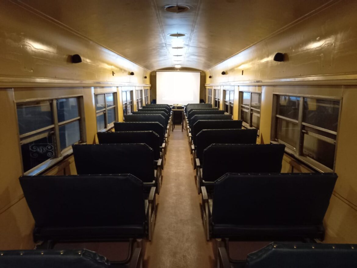 As sessões de cinema ocorrem em um antigo vagão de trem da Estrada de Ferro Sorocabana (EFS), construído em 1951, que funciona como sala de cinema dotada de projetor, sistema de som e gerador para funcionamento dos equipamentos. Ele é tracionado por uma antiga locomotiva até os locais das apresentações, os quais guardam relação geográfica com os locais das antigas estações da ferrovia.