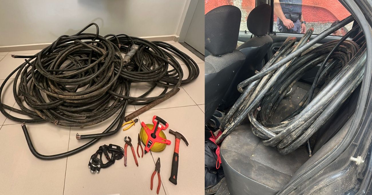 Além da fiação, foram localizados objetos que podem ter sido usados para o furto: uma lanterna de cabeça, uma trena, um martelo, dois alicates de corte e dois alicates comuns. Segundo relato do primeiro abordado, ele teria comprado parte dos fios de um desconhecido, no dia anterior, por apenas R$ 30,00.